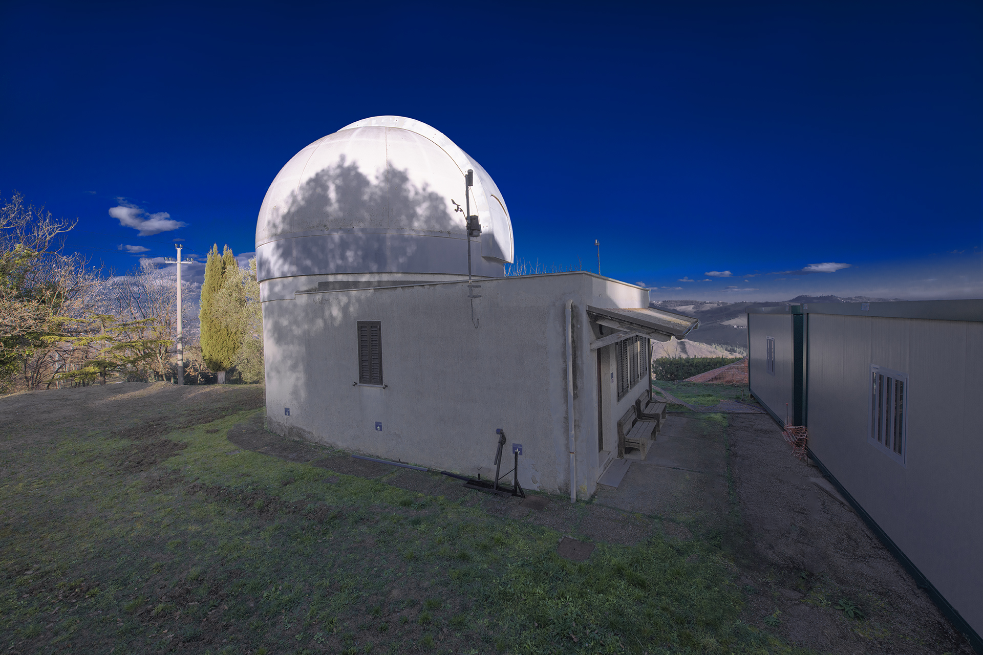 Abruzzo Astronomical Observatory - 2026.01.24 - Padiglione TNT (Teramo Normale Telescope): the second pavilion was constructed in the 1970s, in close proximity to the Zappa Pavilion. The TNT Pavilion currently houses the eponymous Teramo Normale Telescope (TNT), an instrument installed in 1995, deve-loped as part of a collaborative project between the Observatory and the Scuola Normale Superiore of Pisa. The TNT is a reflector telescope with an equatorial mount, featuring a Ritchey-Chrétien optical configuration with a focal length of 714 cm, a 72 cm primary mirror, and a secondary mirror of approximately 19 cm. A CCD detector, with a resolution of 1024×1024 pixels, is mounted at its focal plane for optical-band observations. Since 2012, the telescope has been enabled for remote observations and is employed both for scientific research and educational outreach. |