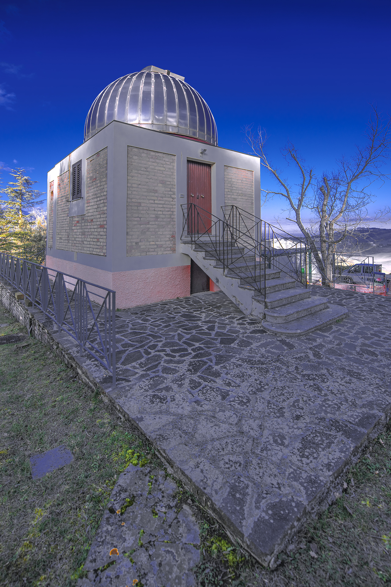 Abruzzo Astronomical Observatory - 2026.01.24 - Padiglione Zappa situated approxi-mately 100 meters northeast of the main pavilion is the small Padiglione Zappa, named in honor of Giovanni Zappa, the Observatory’s first Director. This modest rectangular building, covering 24 square meters, is divided into two rooms: the first, originally fitted with a movable roof, was designed to accommodate Cooke’s photo-graphic camera; the second, smaller in scale, served as a darkroom for changing and developing photographic plates. A subterranean level, accessible from beneath the main entrance, spans the entire footprint of the structure. In 1947, the original sliding roof was replaced by a newly constructed dome, whose installation took place between 1949 and 1950. Today, the pavilion houses the XLT telescope, a reflector with an equatorial mount and Ritchey-Chrétien optical configuration, F/8 focal ratio, and a 40-cm primary mirror. The telescope is primarily employed for educational and outreach activities.